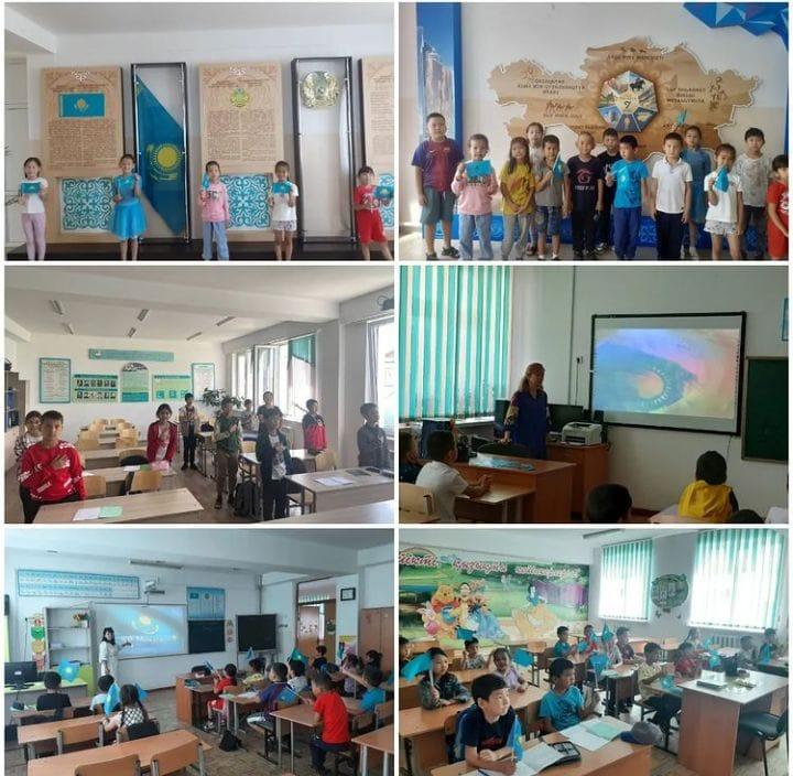 18 август 2022 0 1 2 3 4 5 Жазғы мектеп оқушыларымен "Елім менің-Қазақстан" тақырыбында танымдық сабақ, бейне баян көрсетілді.