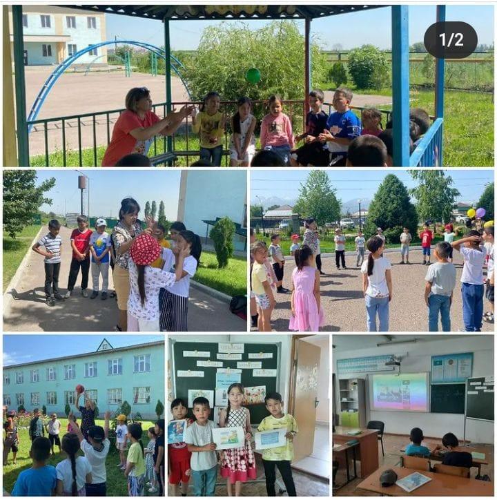 Балалар жылы аясында мектеп жанындағы "Күншуақ" сауықтыру лагерінің жетекшілері Рахметова Анар Исаева Жазира Бектлеу Айгул "Табиғатты аялайық", "Спорт денсаулық кепілі" тақырыптарында іс - шаралар өткізді.