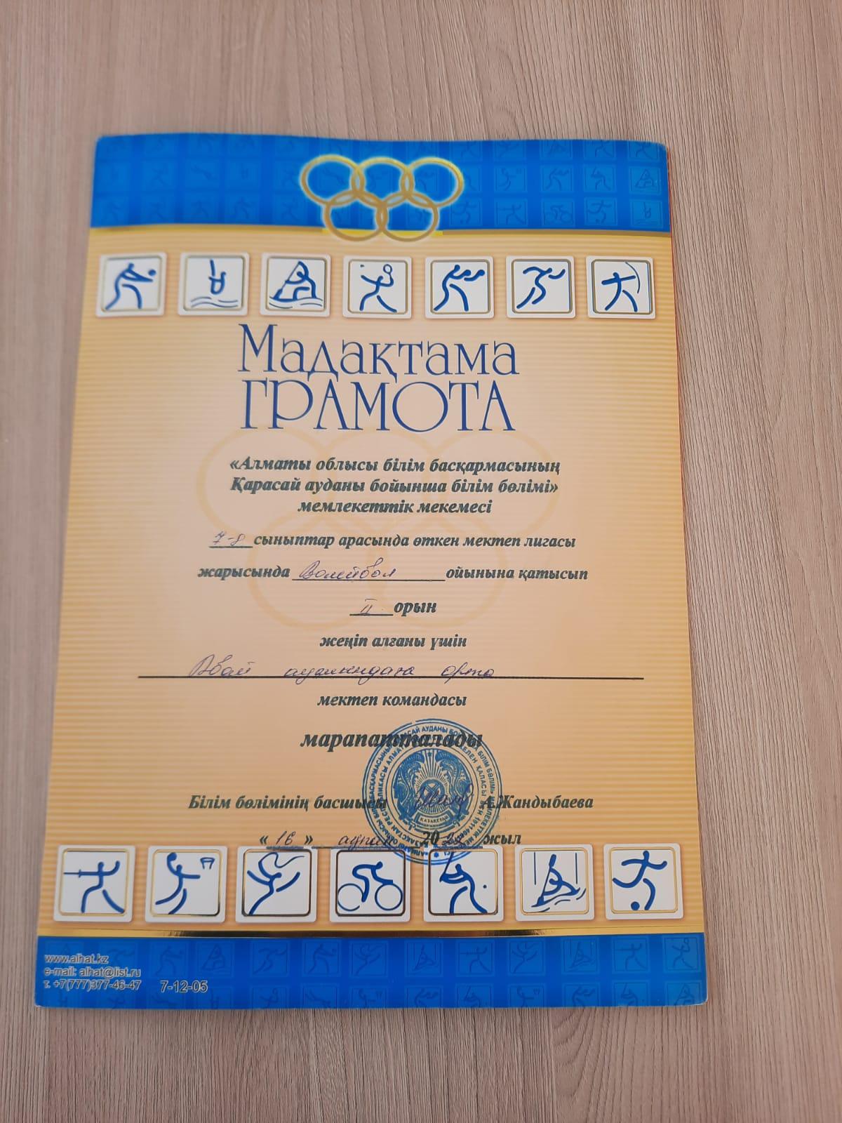 7-8 сыныптар арасында өткен мектеп лигасы жарысында Волейбол ойынына қатысып ІІ орын жеңіп алғаны үшін Абай ауылындаға орта мектеп командасы марапатталады.Құттықтаймыз!