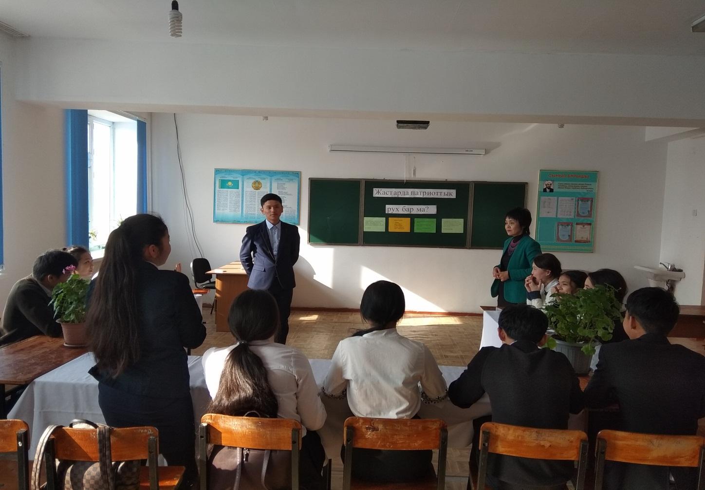 12 февраль 2018 0 1 2 3 4 5 Махаббат пен шығармашылық педагогикасы 06.02.2018 ж. Патриоттық, адамгершілік, қайырымдылық туралы «Жастарда патриоттық рух бар ма?» , 10-11 сынып оқушылары арасында дебат өткізілді.