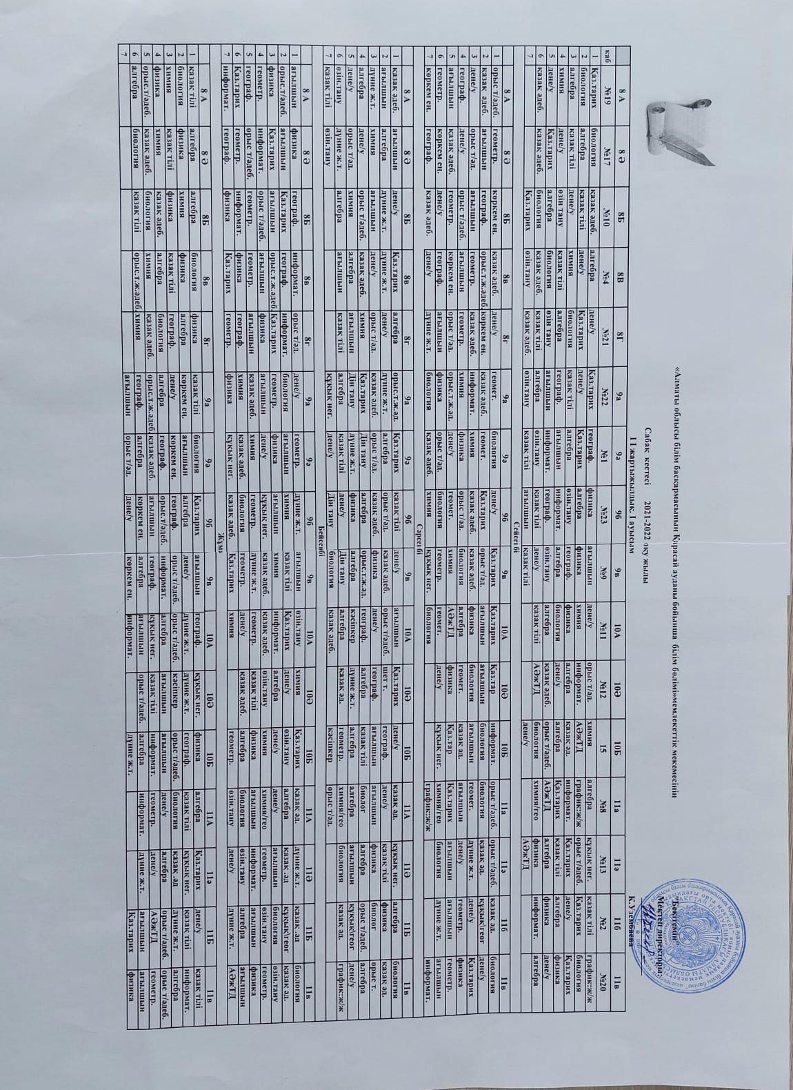 2021-2022 оқу жылының І және ІІ ауысымның ІІ жарты жылдық сабақ кестесі, » Алматинская область Қарасай ауданы "Абай ауылындағы орта мектебі"КММ