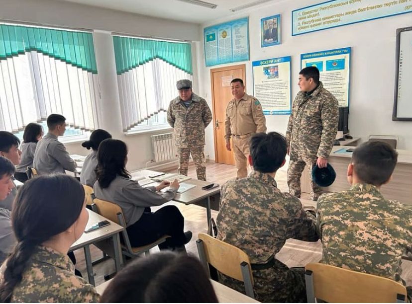 Бүгін Алматы облысы Қорғаныс істері департаментінің орынбасары полковник Акишев Дулат Жумабекович пен Қарасай аудандық ҚІЖБ бастығы капитан Абдықалыков Ерлан келіп мектебіміздегі әскери оқу кабинеттерін көріп, 10 сынып оқушыларымен кездесті